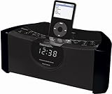 - Sleek clock radio with built-in, top-mounted iPod docking station