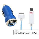 Best EZOPower 3 feet Blue Flowing Illuminate Light Sync & Charging USB Data Cable - (White / Blue) + Blue 2-Port USB Car Charger Adapter 2A for Apple iPad, iPhone, iPod Touch, Nano Low PriceBy : EZOPower Price : Please check price In Stock EZOPower Visible Flowing Current USB Sync & Charge Cable is Genuine Electronic Accessories Licensed by Apple. It is Certified to use Apple Approved Logo "Made for iPod iPhone iPad". The "Made for iPod iPhone iPad" logo means that an electronic accessory has been designed to connect specifically to iPod, iPhone, or iPad and has been certified by the EZOPower to meet Apple safety and performance standards. Compatible Model Apple iPad 1 / iPad 2 / iPhone 4S / iPhone 4 / iPhone 3GS / iPhone 3G / iPhone 1st Gen Apple iPod Nano 1st, 2nd, 3rd, 4th, 5th, 6th Gen / Touch 1st, 2nd, 3rd, 4th, 5th Gen Apple iPod 3rd, 4th, 5th Generation, Mini, Photo, U2, Video, Classic 2-Port USB Car Charger (2000mA) - Blue Use your car to charge any devices (digital cameras, PDAs, mobile phones, Tablet, USB accessories and more) that can rely on USB for power! This adapter plugs into your car's cigarette lighter jack to become a powered USB port. Brand new GTMax charger. Input: 12v DC Output: 5.0V / 2000mA Short circuit protection. LED charging indication. 2 USB Port Plug never heats or overcharges the battery. Intelligent IC chip inside recognizes a full battery and automatically switch to a saver. You must have a USB charging cable (sold separately) in order to charge your device with this charger. Instruction: Please Read Both USB Port able to charge Cell Phone, PDA Phone, iPhone, MP3 Player, GPS, Ebook, Amazon kindle Ebook All Generation, Amazon Kindle Fire. However, it is only compatible to certain Tablet Model, please follow instruction very carefully USB Port label 1A able to charge following model Samsung Galaxy Tab 7inch, 10.1 inch, Blackberry Playbook USB Port label 2.1A able to charge following model. Apple iPad 1 and Apple iPad 2